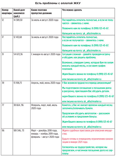 Редакция журнала «Управление МКД» совместно с маркетологом и психологом улучшила классический список должников. В результате в шаблоне появились решения, как погасить задолженность для каждого конкретного должника. Скачайте и используйте в работе!